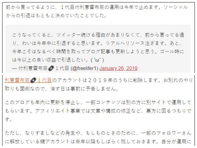 アフィリエイト界隈の有名人、付利意雷布亜氏がツイッターを引退?